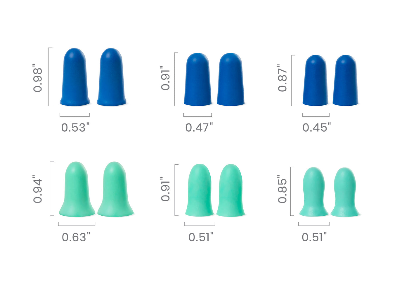 Manta Foam Earplugs Trial Kit includes 6 unique shapes and sizes, designed to help you discover the perfect match for your ear shape.