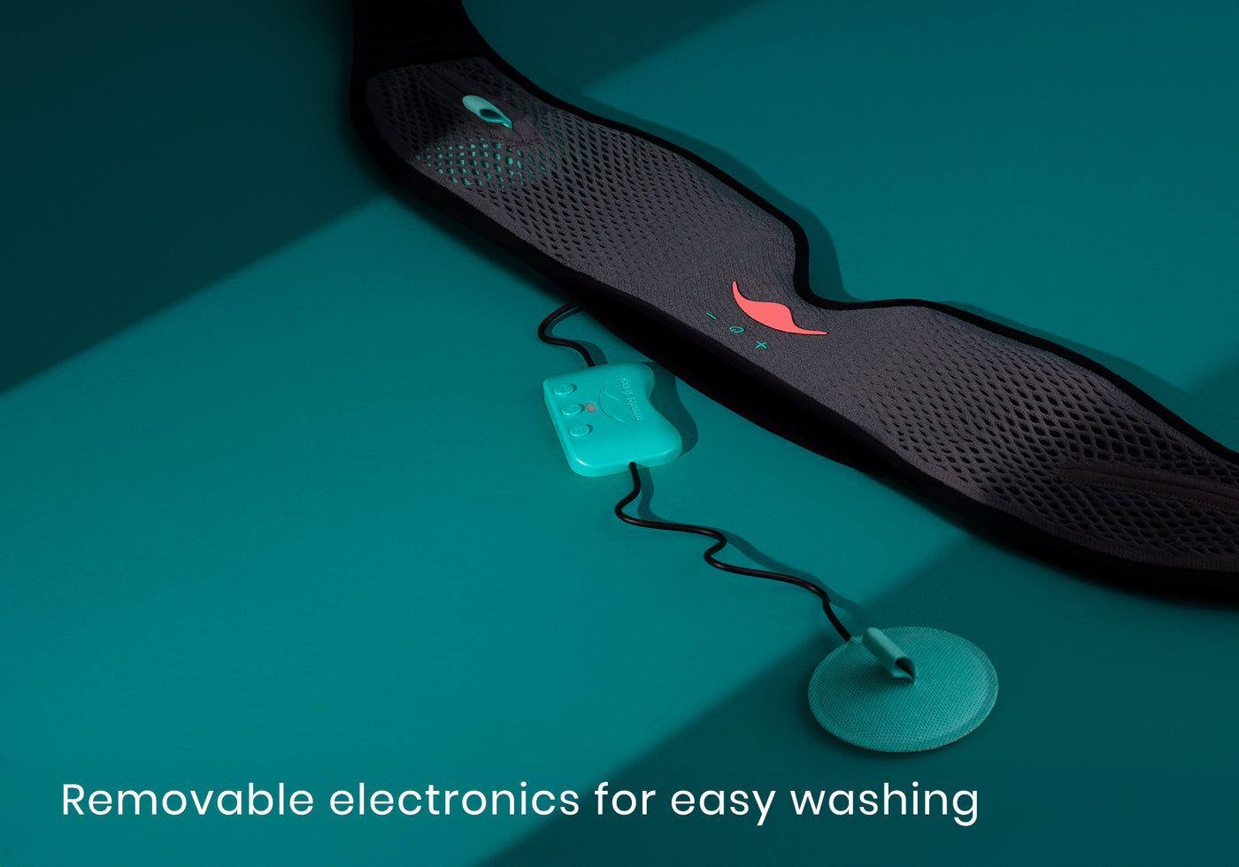 Remove the electronics through this convenient access point, machine wash the mask and snap everything back into place.